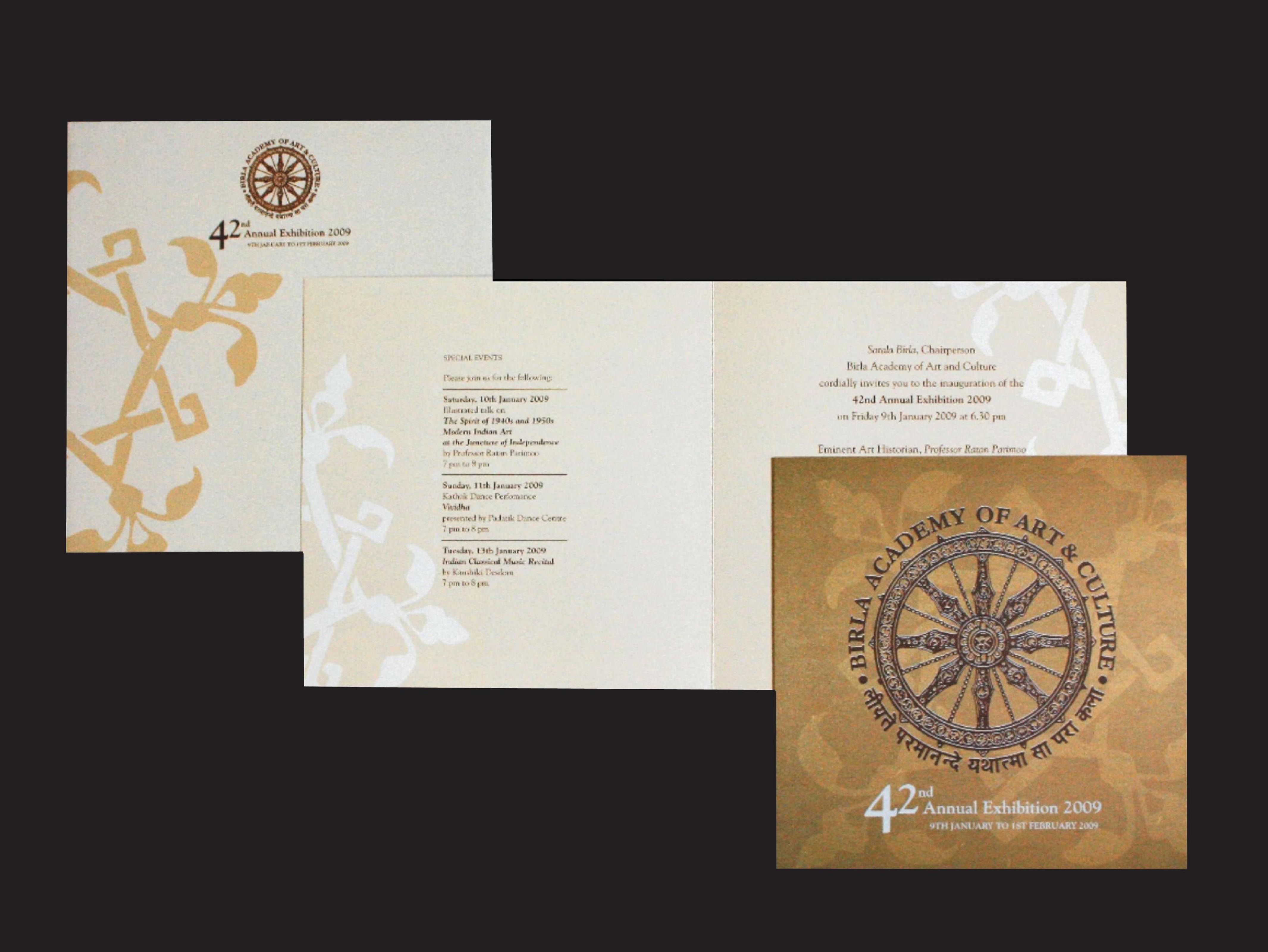 Birla Academy of Art & Culture has been an established centre of cultural, artistic and educational activities in Kolkata since 1966, with a principal emphasis on visual and performing arts. A set of invitation cards and posters has been designed for their annual exhibition each year. Seek more