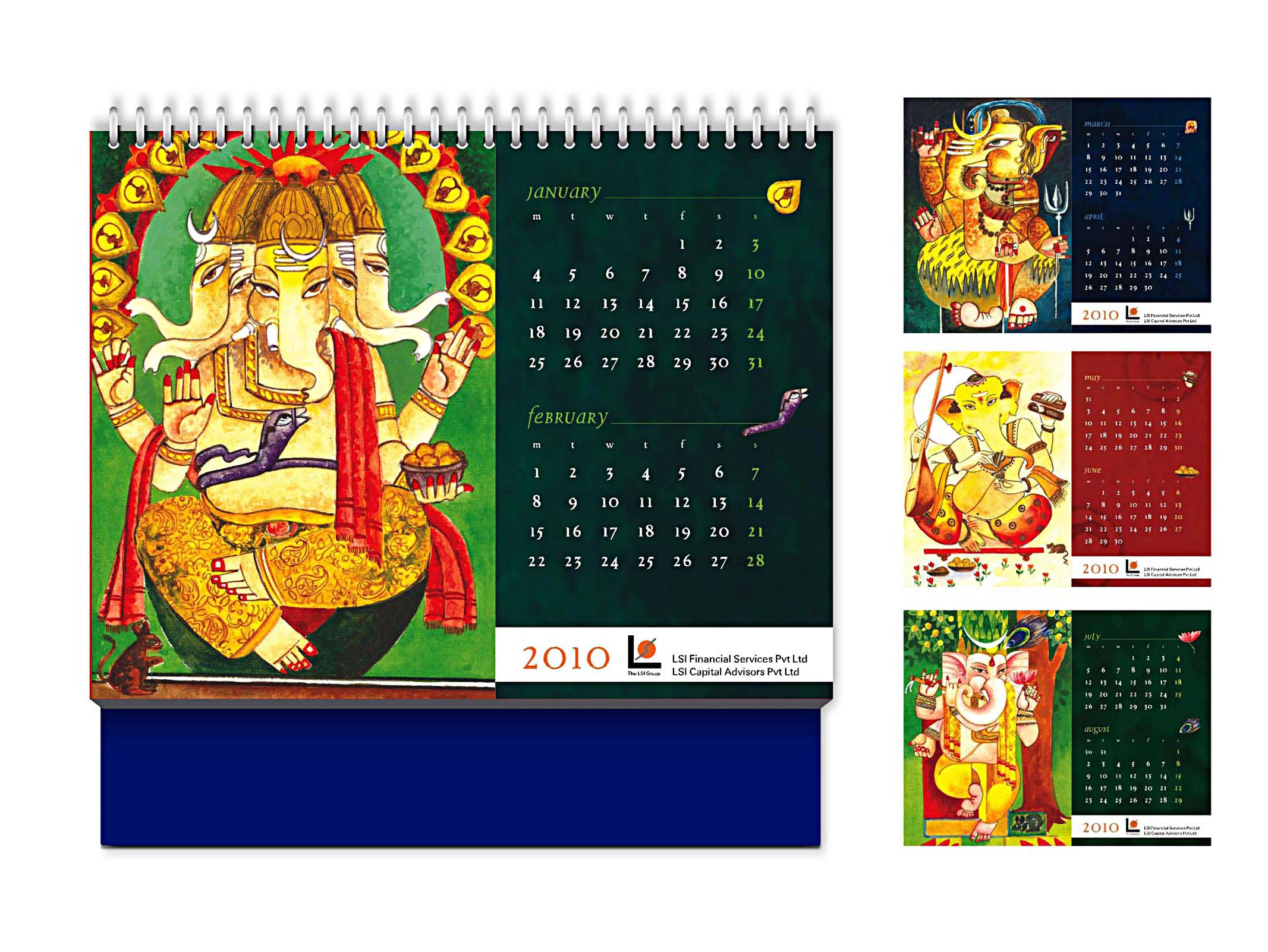 LSI is a financial services company. Its 2010 calendar is dedicated to Lord Ganesha. It features a series of water colour paintings on hand made paper. In invoking the Lord of success and wisdom, LSI projects greater growth for the future. Seek More