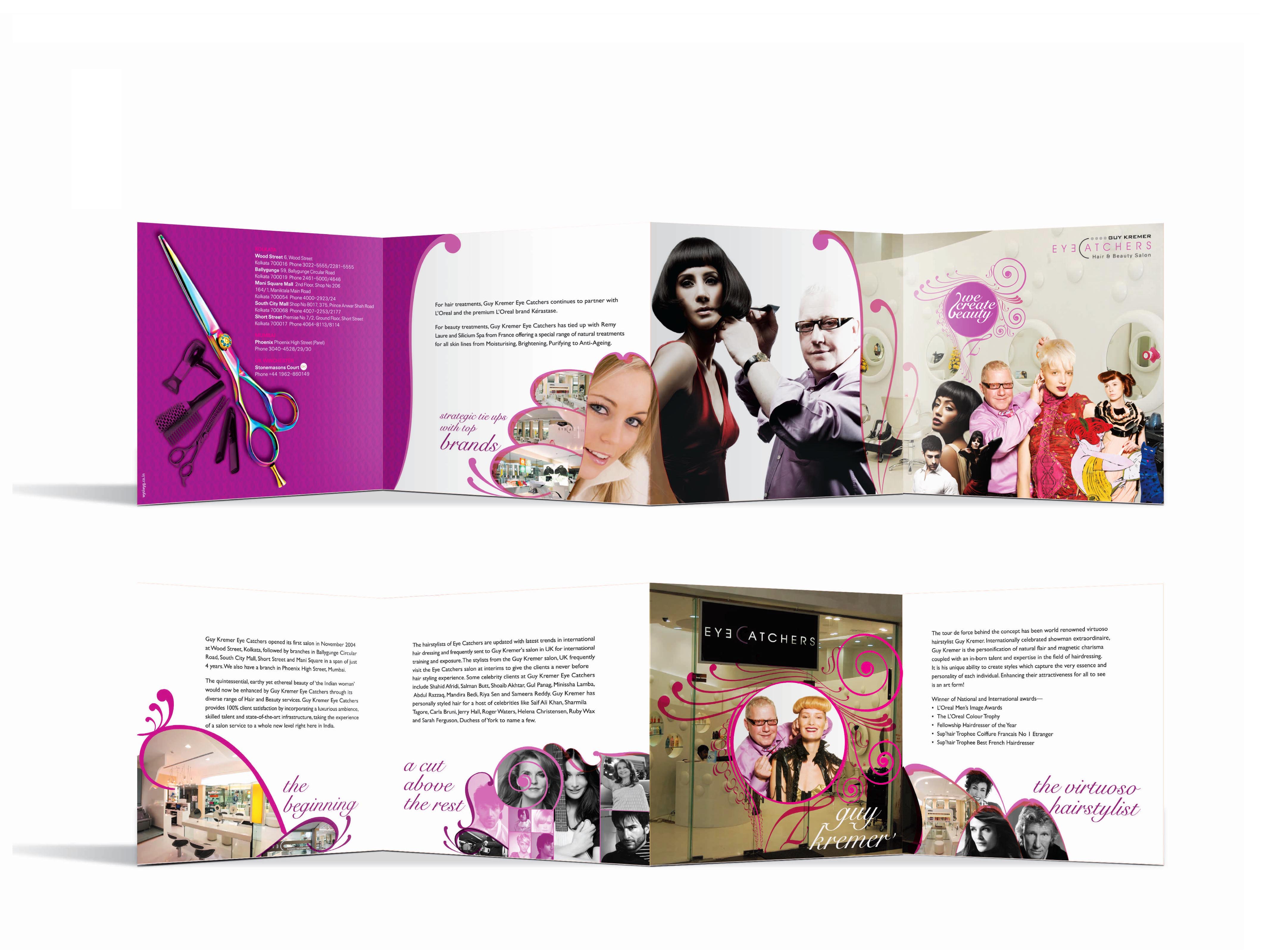 EyeCatchers is a beauty salon with several branches around the city. We added a style quotient to the look and feel of this booklet by adding and enhancing design elements and extending the brand colours throughout the booklet in a tribute to beauty, form and style.