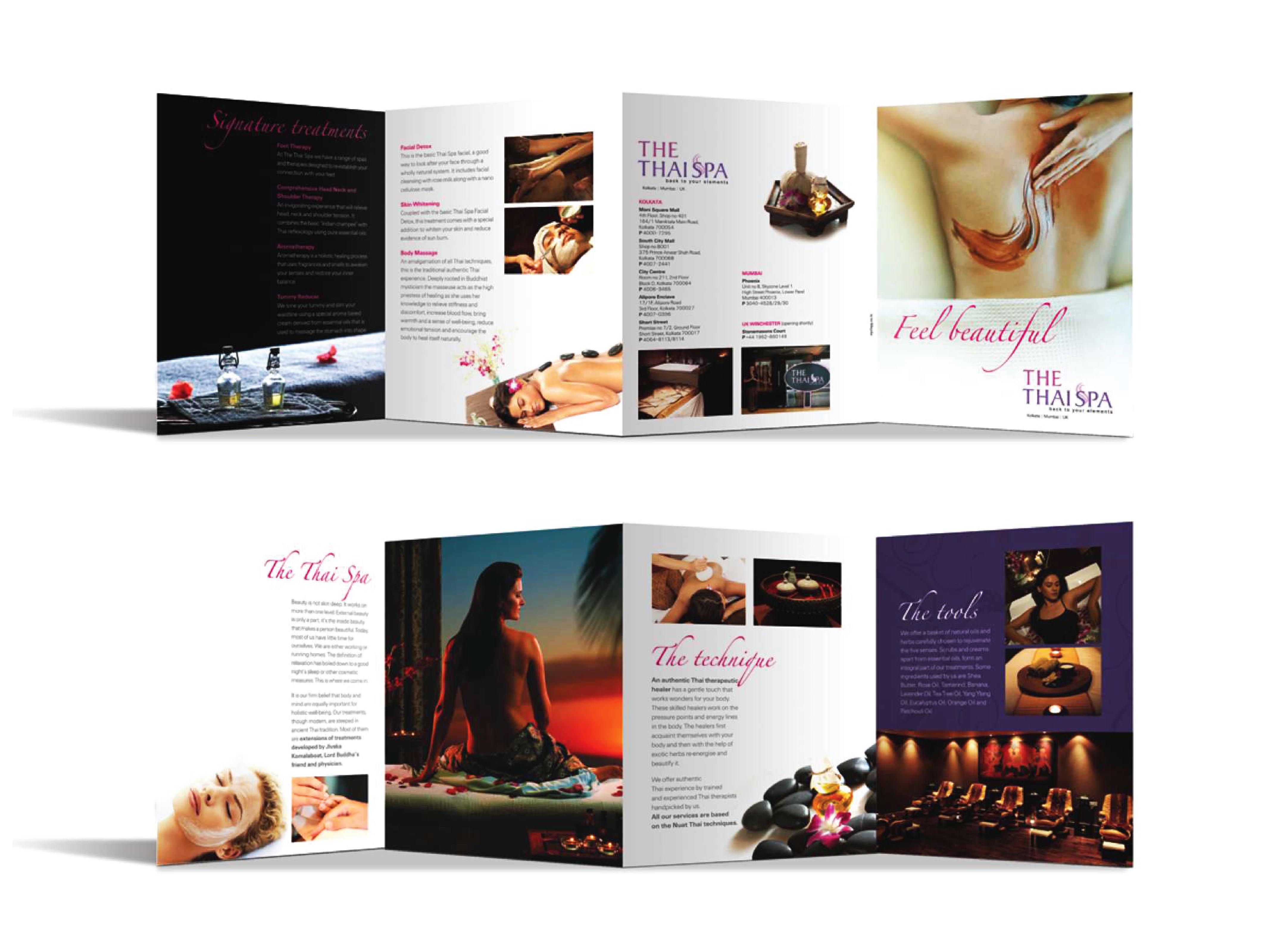 The Thai Spa is a chain of authentic Thai therapeutic spas spread across Kolkata. The idea of this booklet is to pay tribute to internal beauty through the holistic well-being of both body and mind. It uses light, air fonts and colours to evoke a sense of unwinding and relaxation.