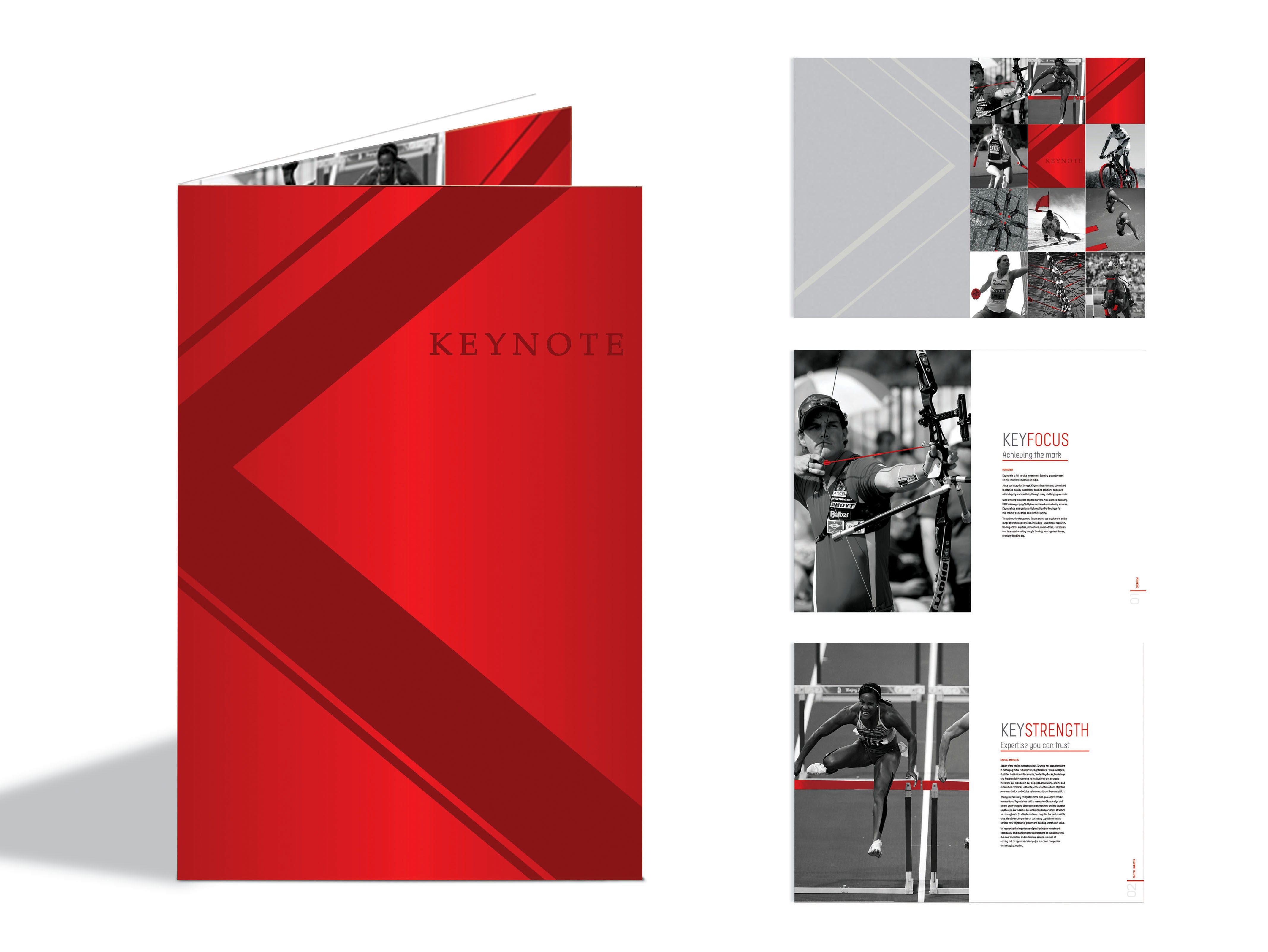 Keynote is financial advisory company involved in the entire gamut of financial analytics and data services. The corporate brochure we created for it coincided with the time of the 2012 London Olympics so we adapted a theme from the worlwide event to showcase the various elements of a financial advisory company, its teamwork and how it deals with competition and the drive to succeed. Appropriate images were sourced and we used red to highlight and unite the various sections.