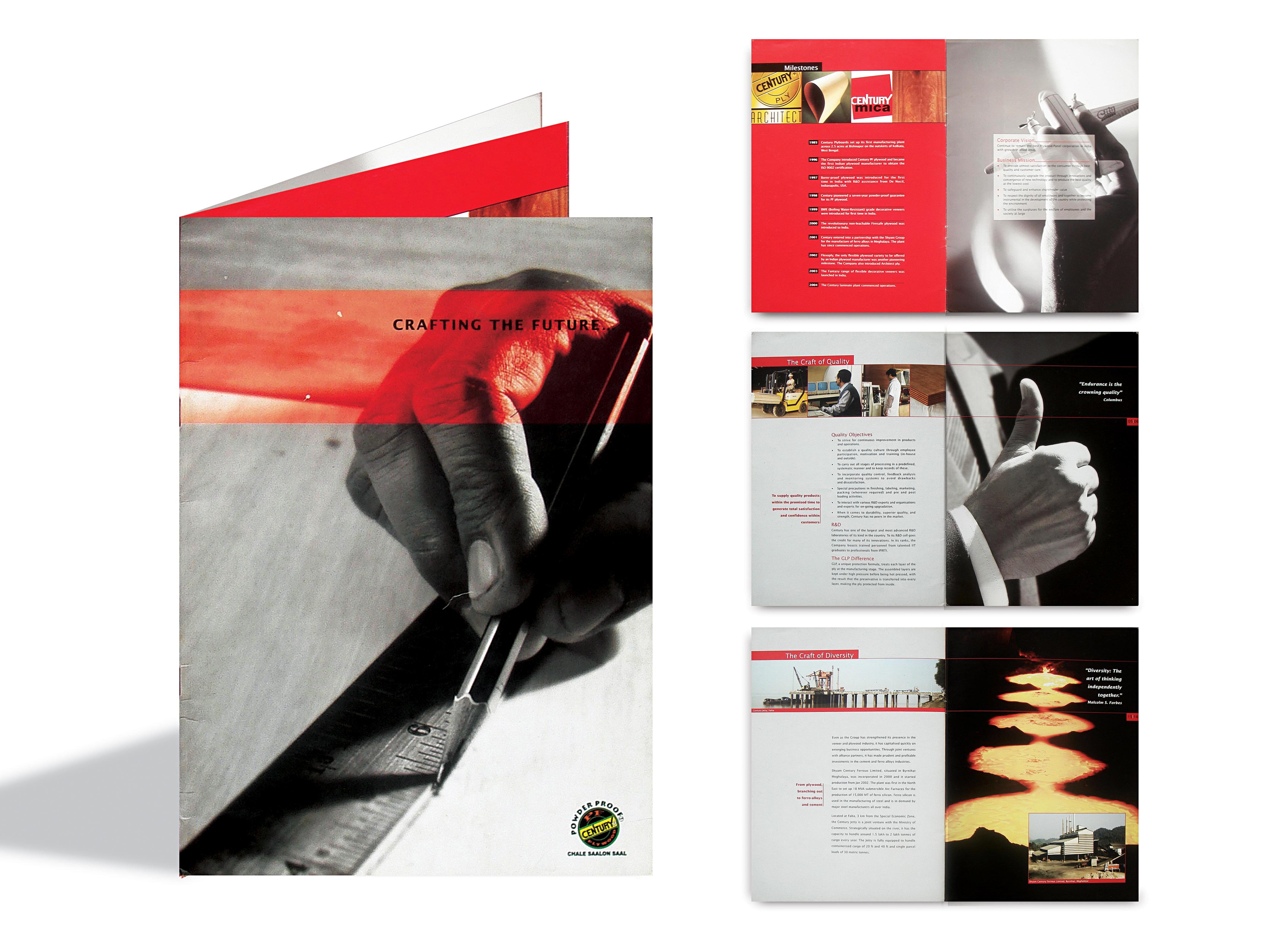 Century Plywood is the the country’s leading brand of plywood. It has the distinction of being the manufacturer of the entire range of commercial, marine, concrete, shuttering and decorative products. The idea behind the brochure was “Crafting the Future”. It explored this concept using the visual device of hands, representing both human values and the craftsman-like fine quality of the product itself.