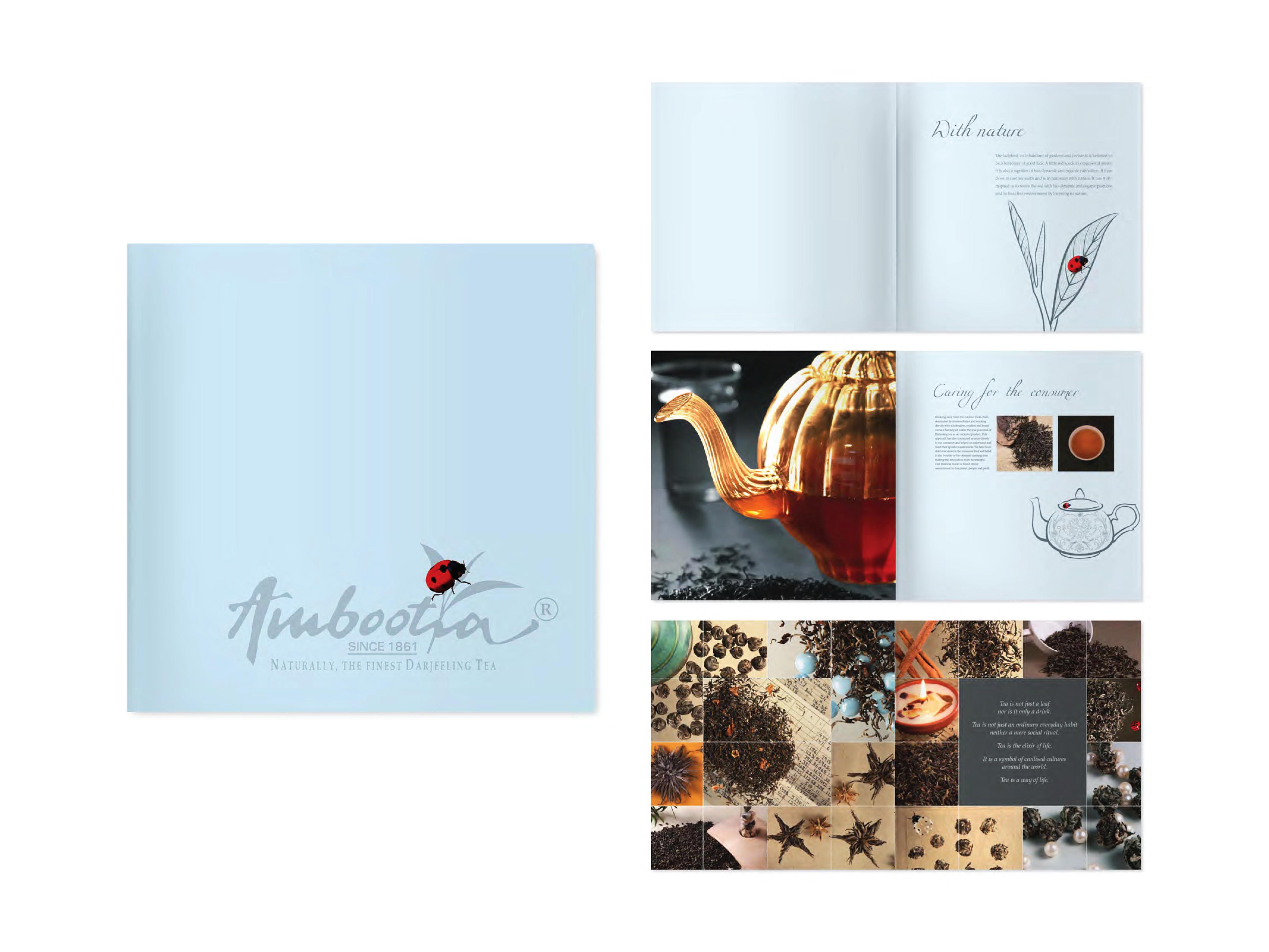 Ambootia Tea Group is known internationally for its quality teas from their several gardens in Darjeeling. The brochure uses the ladybird which is a part of the company’s logo and is strongly associated with the company’s identity, in an interesting die-cut. Apart from this, fine, silver embossed lines and an illustration technique give the brochure a premium and minimalistic look.