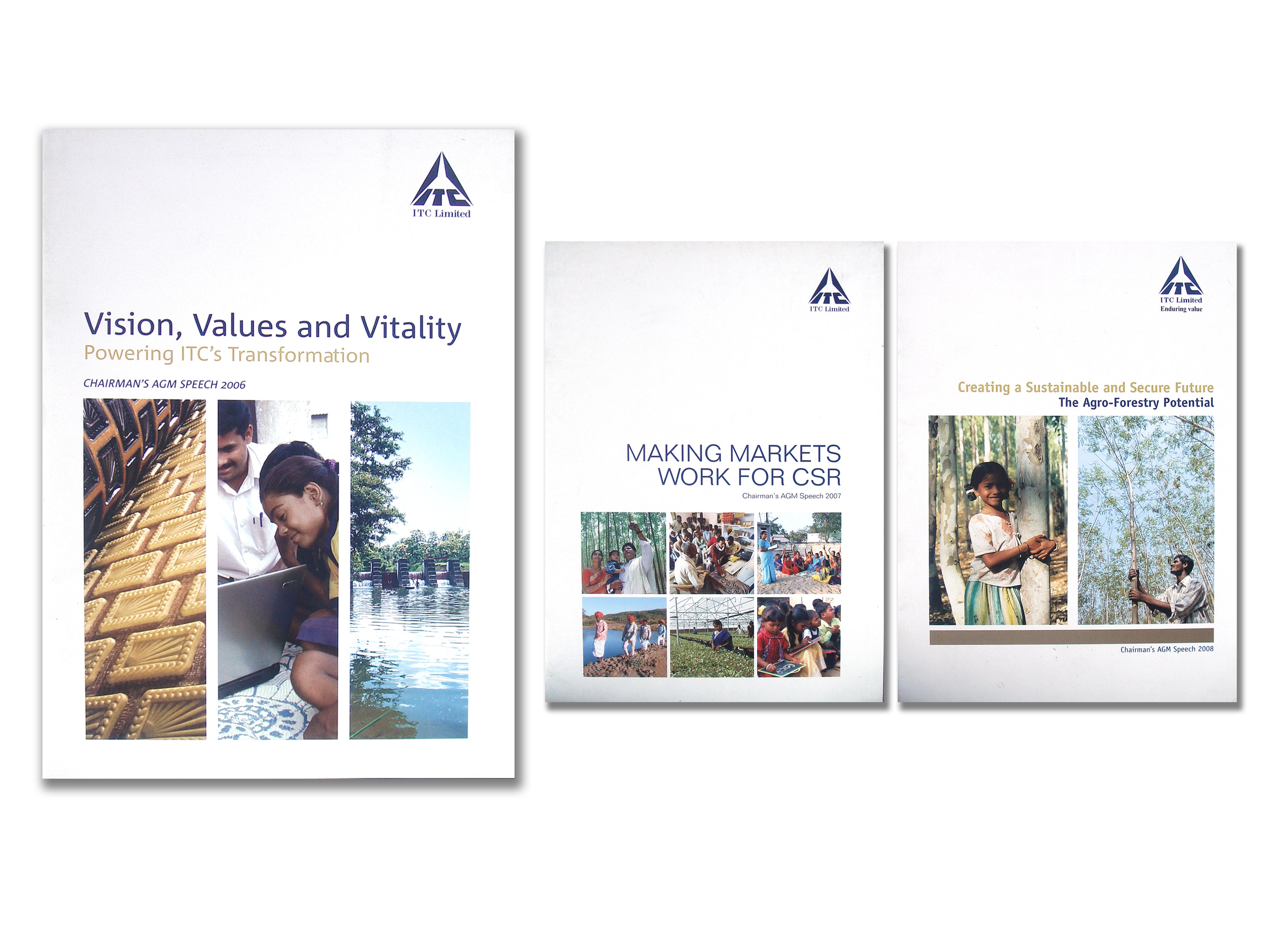 ITC has always been conscious of its contribution towards preserving the environment. Its Sustainability Report is an effort at enunciating its ‘passionate respect for the environment’. The brochure was created in shades of green with backgrounds and imagery commensurate to the message at large.