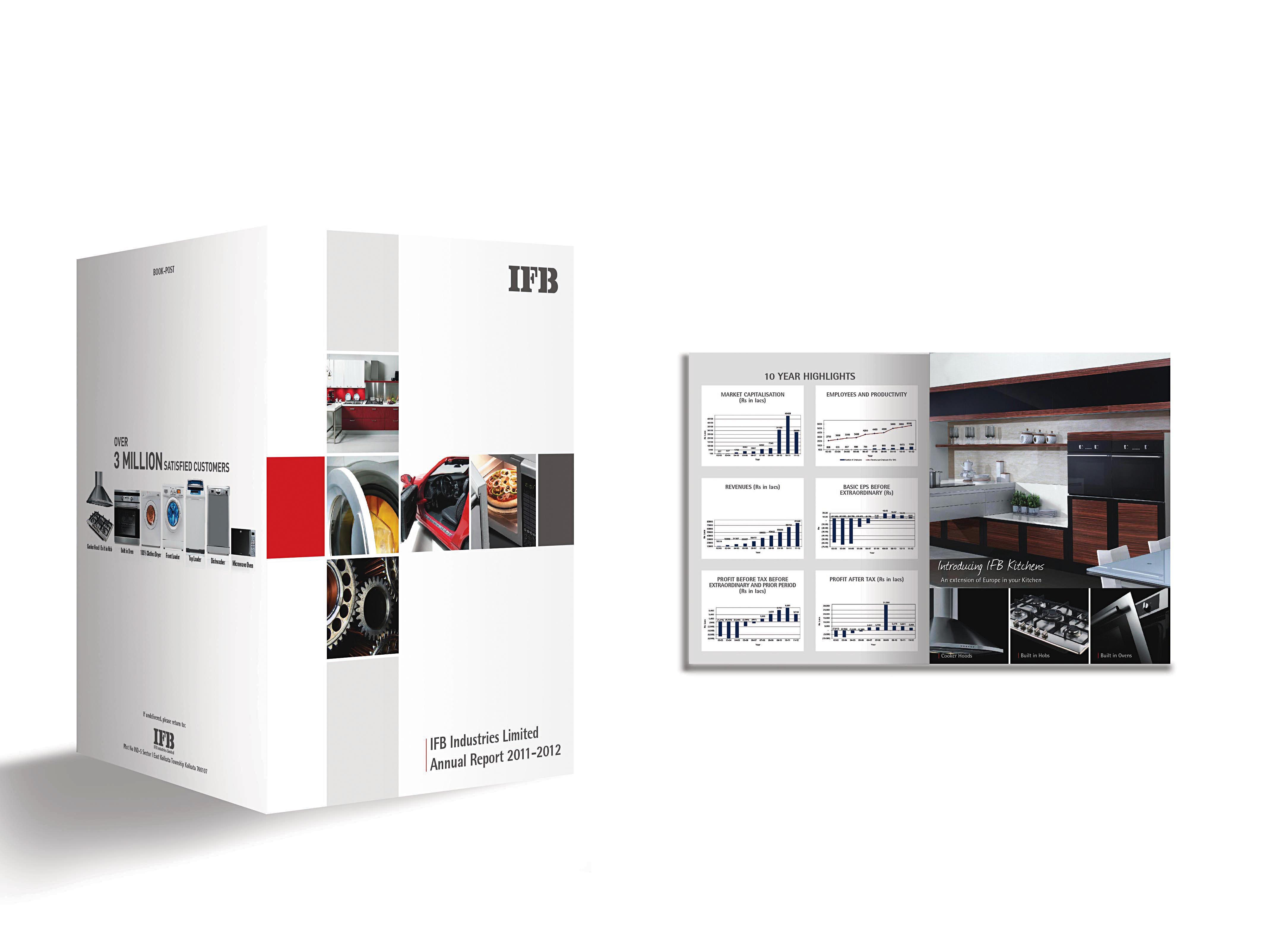 The 2011–2012 annual report for IFB Industries Limited employs a neat grid of images on its cover, portraying the various products and categories the Company is involved in. The pages within contain sectioned analyses of IFB’s various operational divisions, to convey the overall financial position of the Company. Seek More