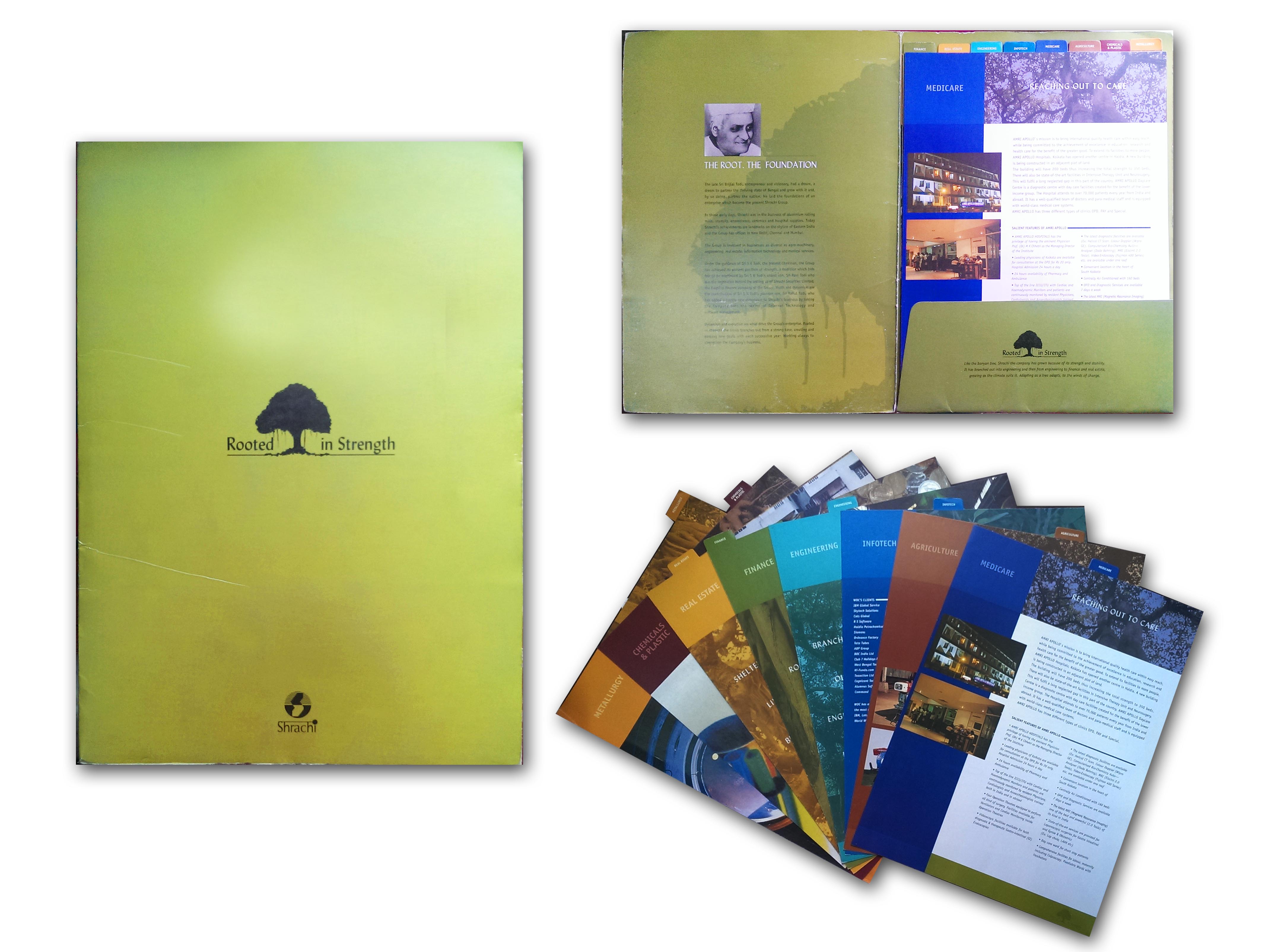 A corporate profile for the group with a folder incorporating the group companies. The concept was that of a banyan tree and the different parts of the tree, roots, trunk, branches etc were extended as metaphors for the companies both visually and textually.