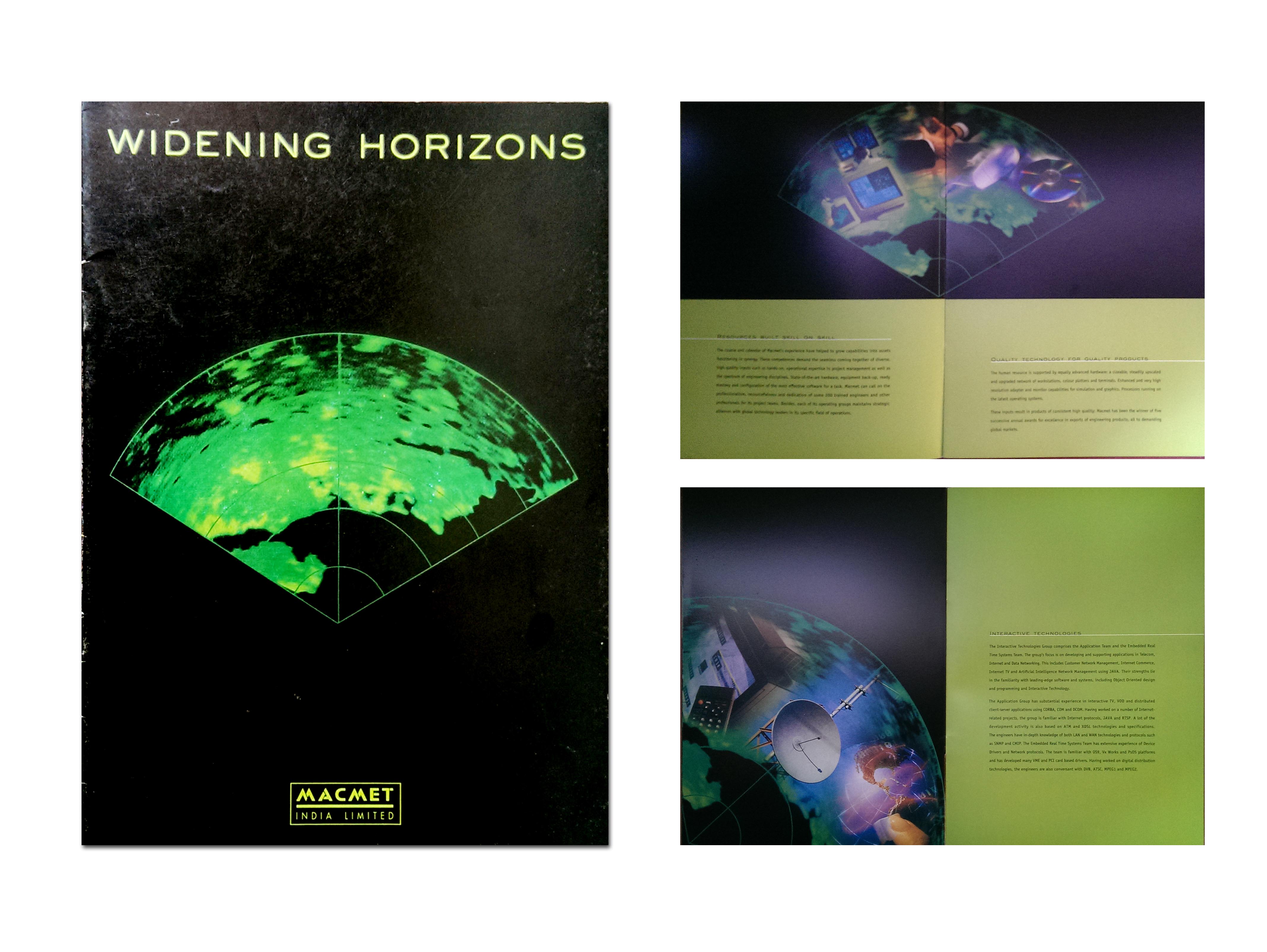 A brochure focussing on Macmet's global extensions used a speedometer graphic in different colours, from a neon green on the cover that took off from the Macmet colour palette. Green continued in the pagination.
