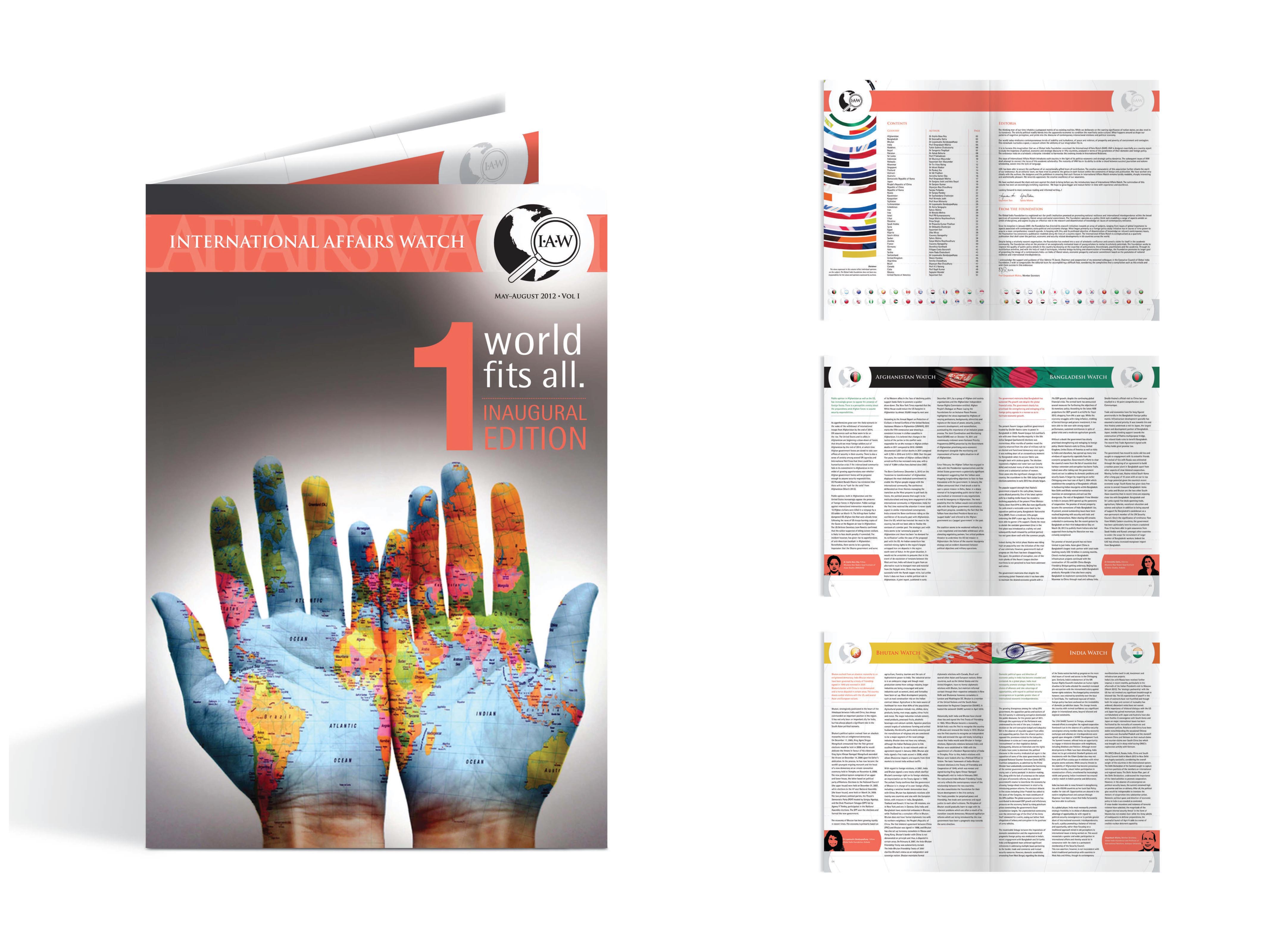 The International Affairs Watch is an initiative of the Global India Foundation and is designed as a quarterly publication intended to cover a gamut of contemporary issues from over 50 countries. The concept employed in this brochure touched upon ownership and belonging. Depicting a pair of hands on the cover, with the world map overlaid on them, the message intended is to take the world into your hands. Seek More