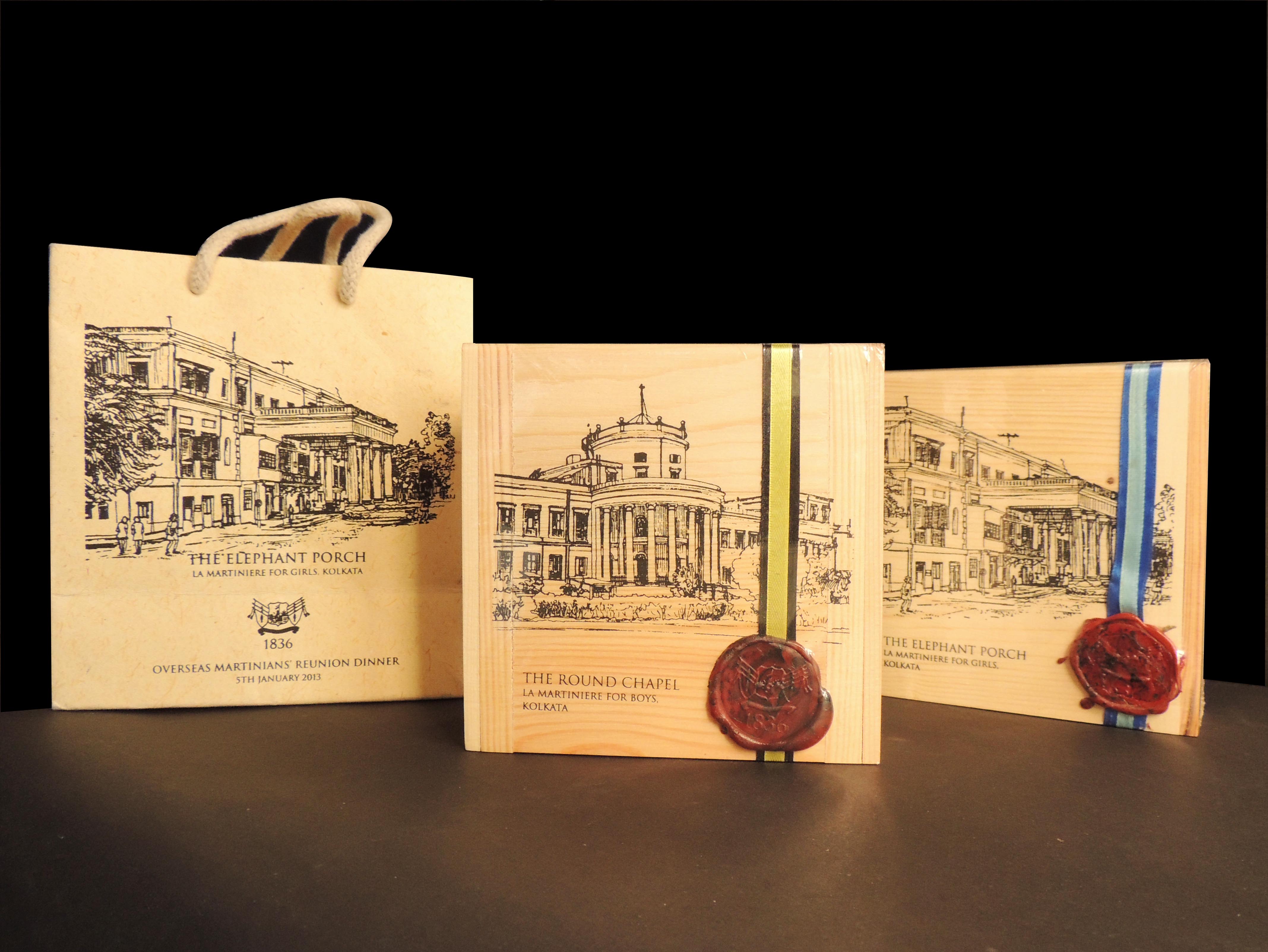 These mementos were created for the La Martiniere reunion. They include coffee mugs, and a shopping bag made in the style of the London Underground maps with the different tracks denoting the house colours. Seek More