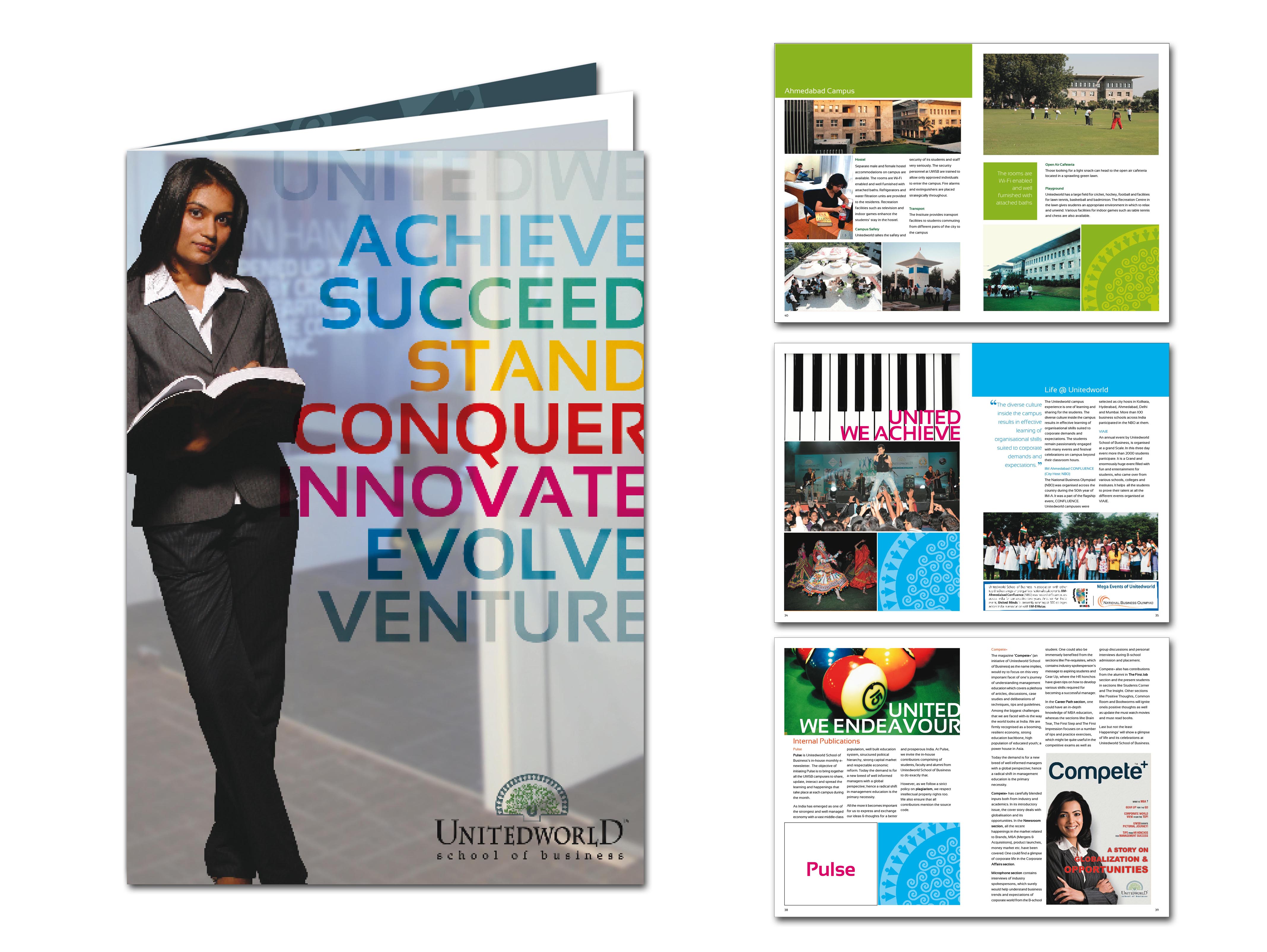 This brochure for UWS was created using a typographical route that explored different inspirational words. The envelope for it features an element of the logo.