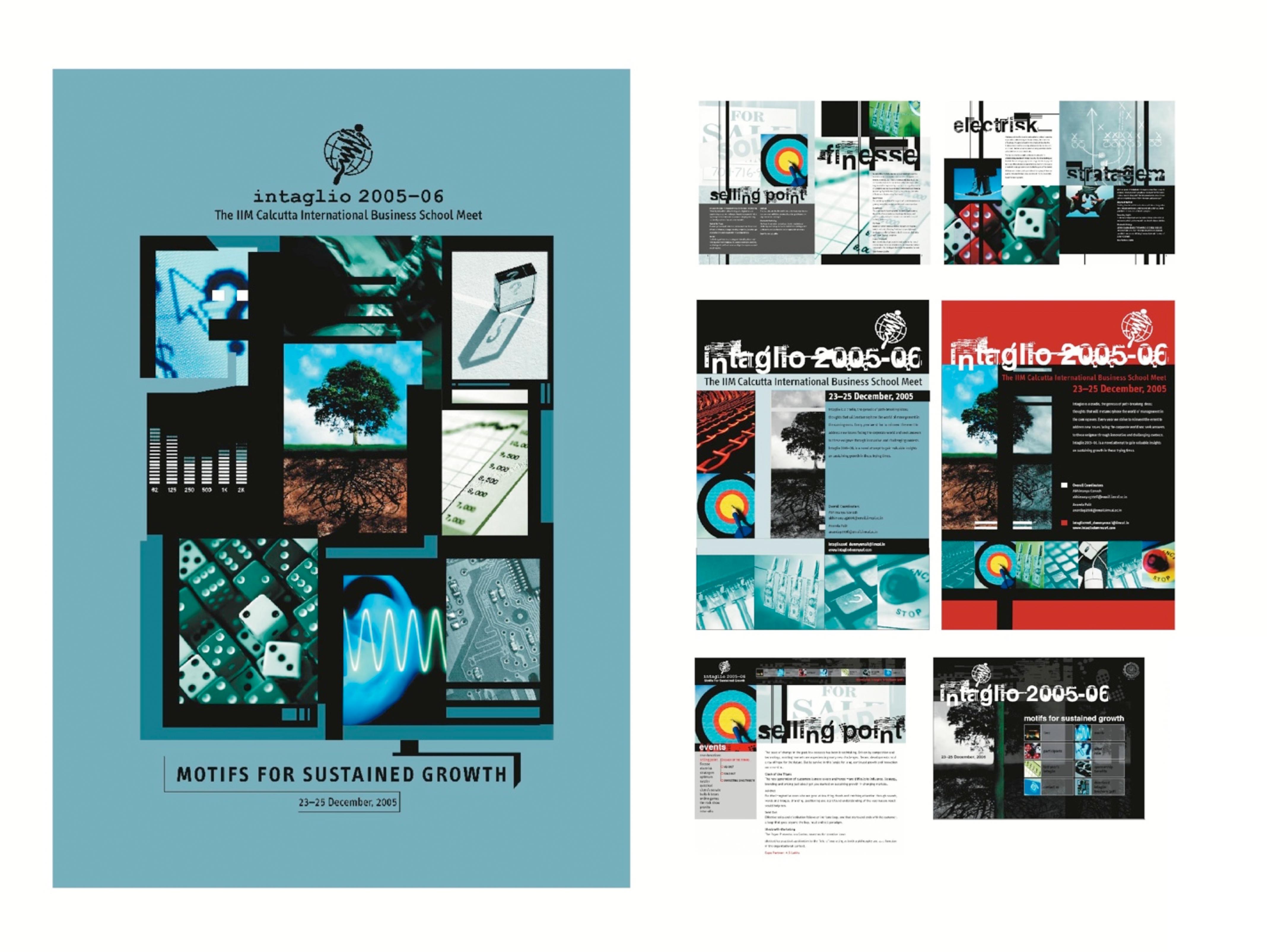 Intaglio is IIM-C's annual fest. We designed the 2005–06 website with the theme Motifs for Sustained Growth in a style applicable to younger people. It uses a colourful tile structure contrasted against a black and white image background to draw in attention and express itself as simply as possible.
