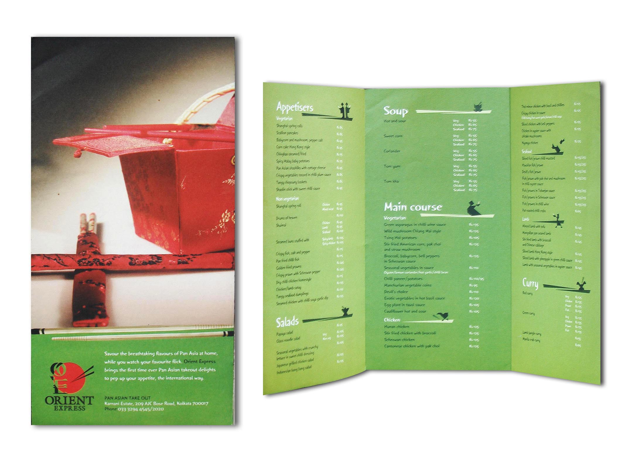 The Orient Express was a Chinese takeaway. We decided to make it stand out by creating a logo in the authentic red and black Chinese colours. The logo features an orientalised font wherein the O and E are conjoined in addition to a top shot of a soup bowl and chopsticks. The font has been extended as watermarks on the stationery. Seek More