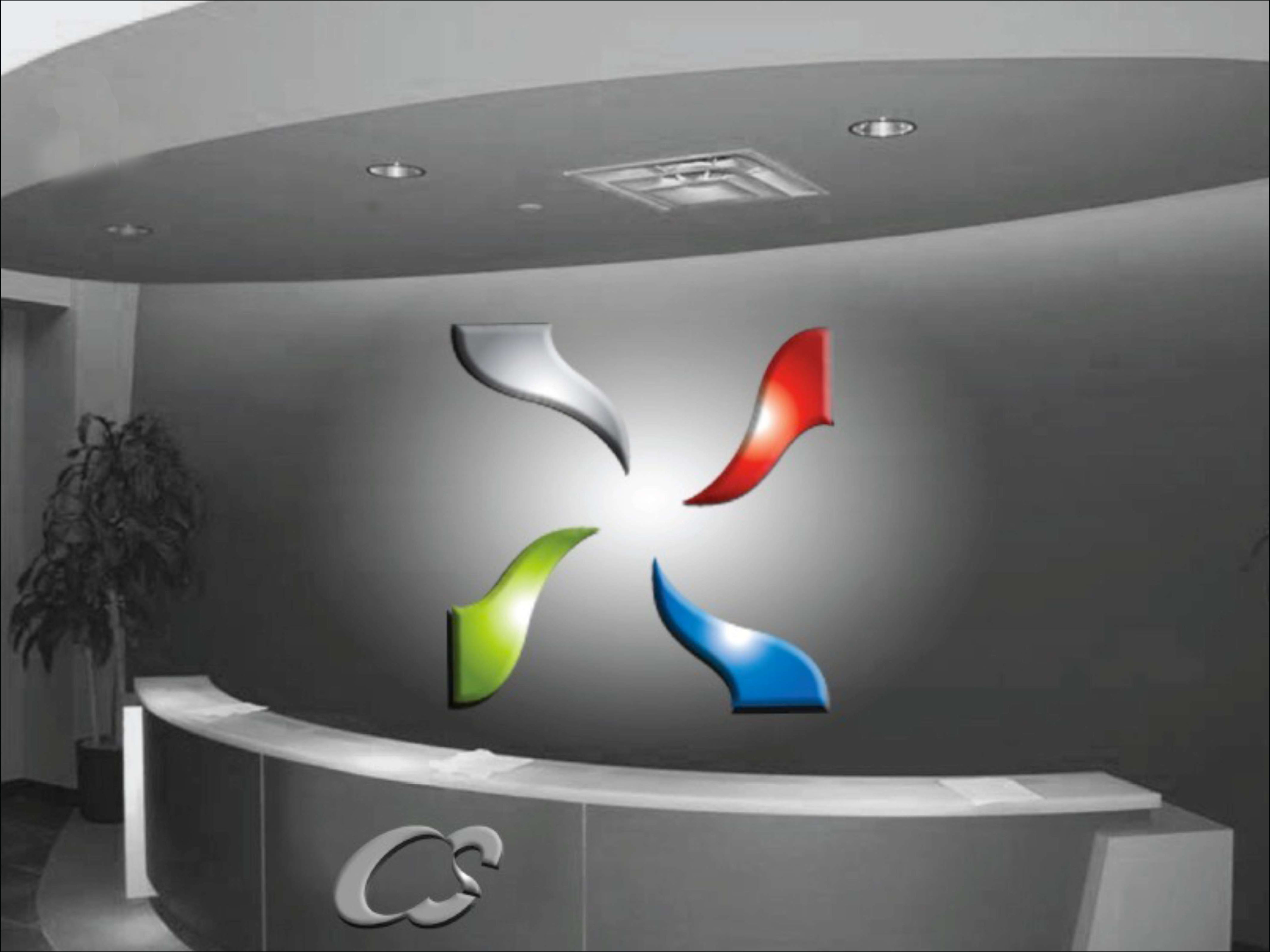 The leaf was extended as a design element everywhere, including the surface graphics of the office reception. Seek more