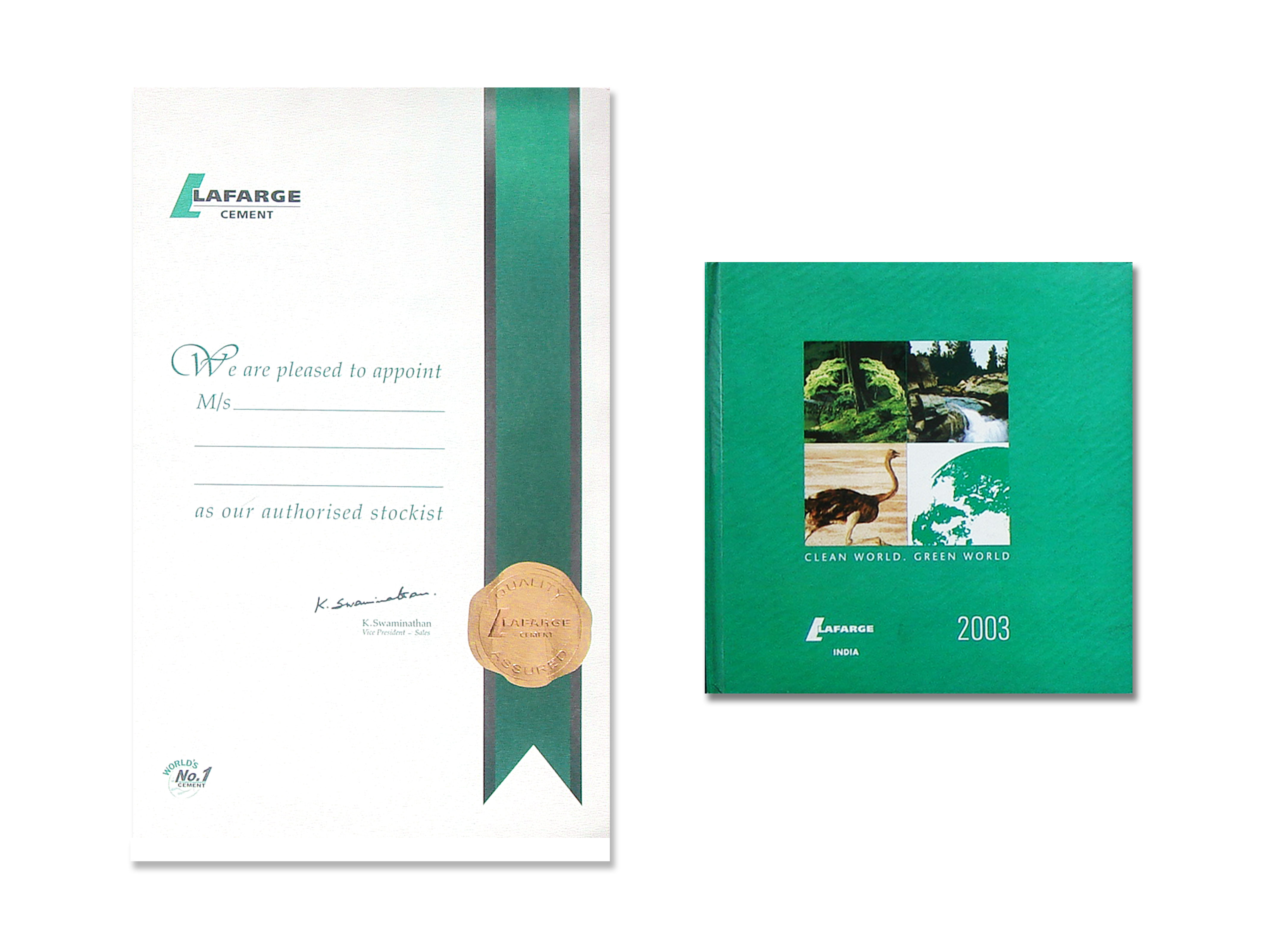 Lafarge is the world leader in building materials. It offers innovative solutions to bringing greater safety, comfort and quality to everyday surroundings. We designed the 2003 diary and dealer certificate. Seek more