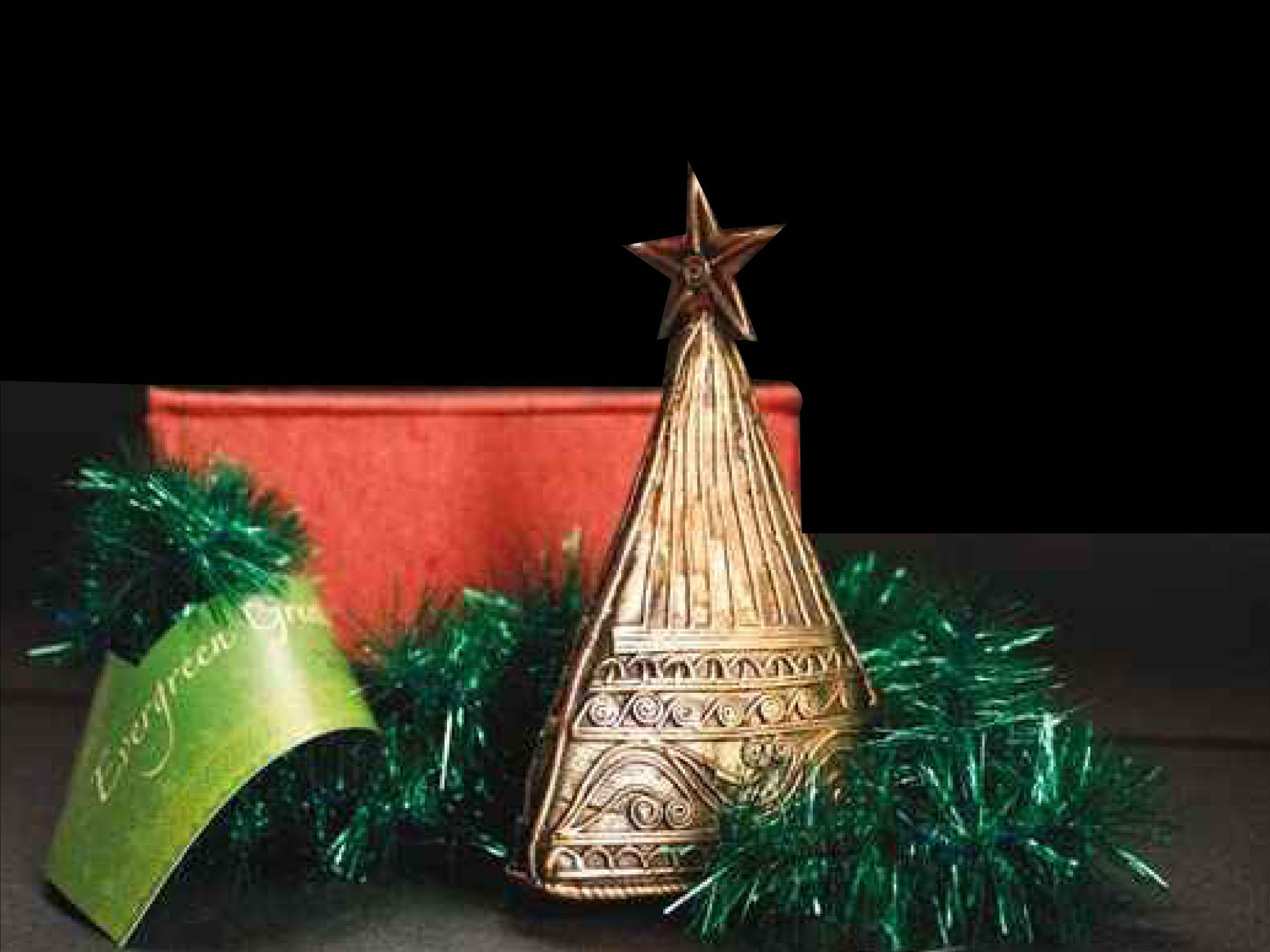 A Christmas tree made of dokra, an Indian handicraft style, created for JD Jones's international business associates. Seek more