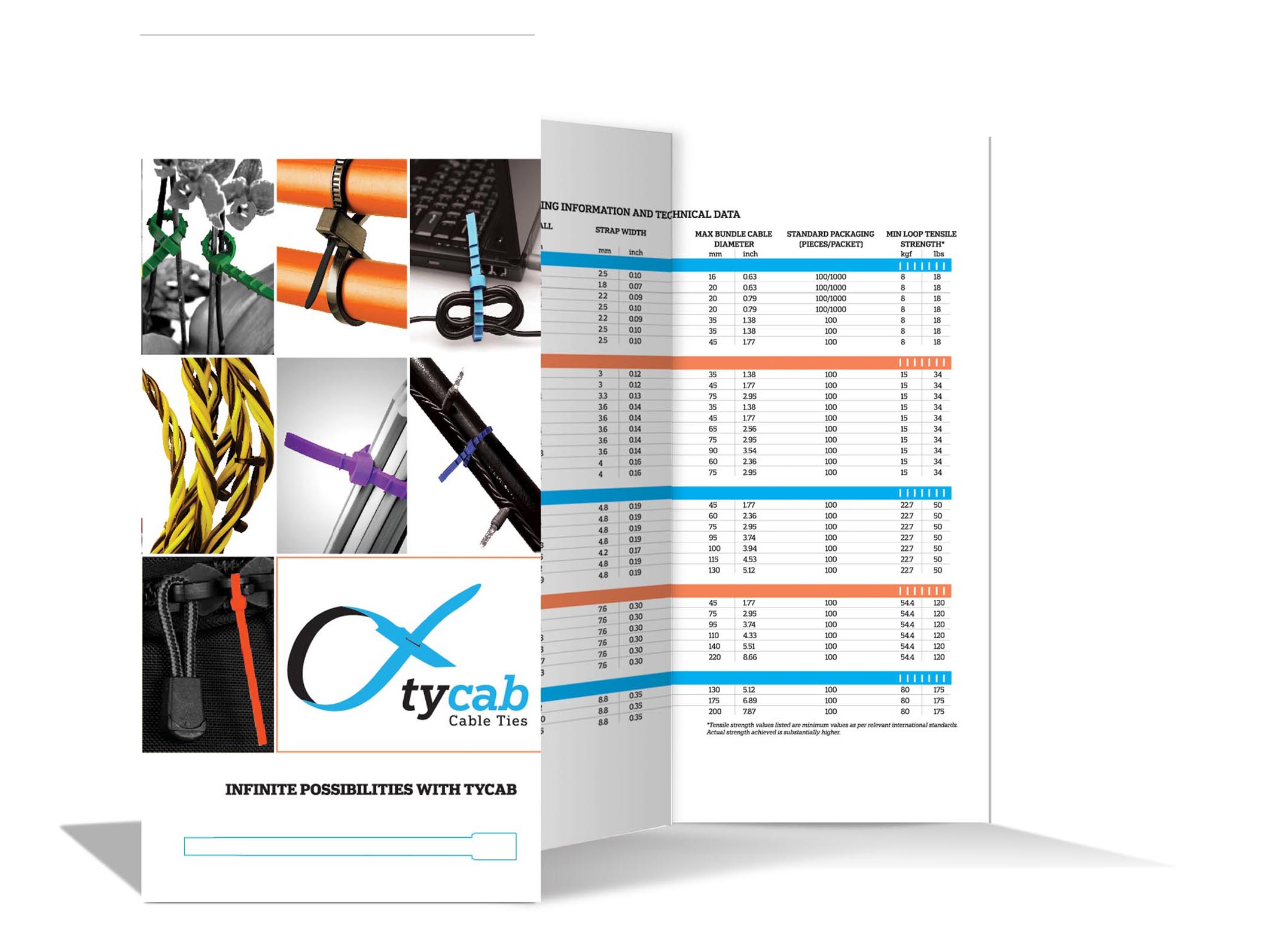 The leaflet we created for Tycab uses a dash of colour in an otherwise dull category and stands out as unique and different. Along with eye-catching product images the leaflet features a die cut cable. Seek more
