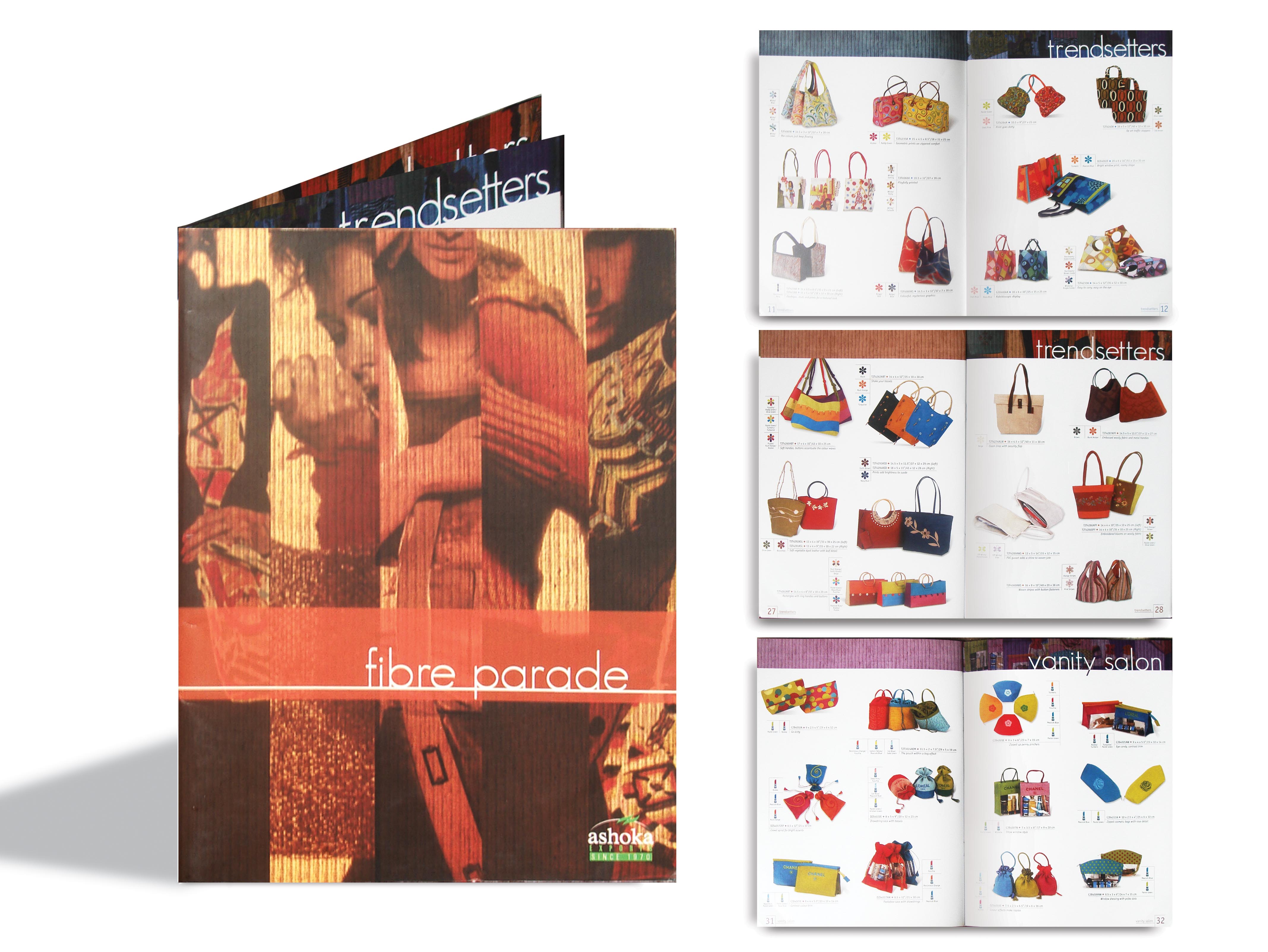 Ashoka’s range of bags and kitchen linen is hand-crafted from ecofriendly recyclable materials such as jute and cotton. The product catalogue utilises an understated fashion quotient for the cover while the product pages use bright, vibrant colours to bring the various ranges to attention. Seek more