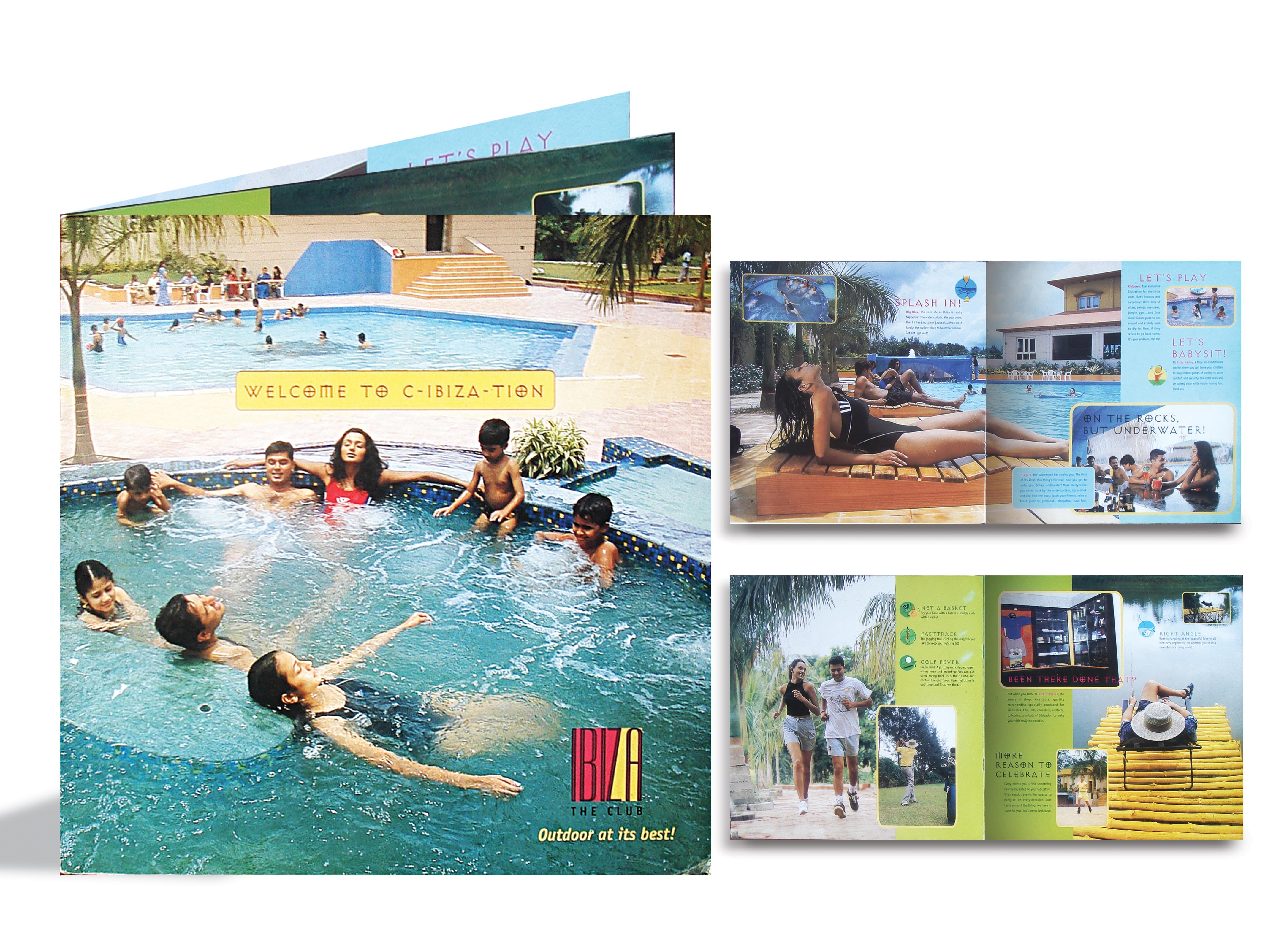 Ibiza is an outdoor entertainment club from the Merlin Group built in the Spanish style architecture. The brochure for it has a very vibrant, youthful feel to it and abounds in colourful pictures of the club’ facilities. The back cover pictures an illustrated map of the entire place and also includes forms for membership to the club.