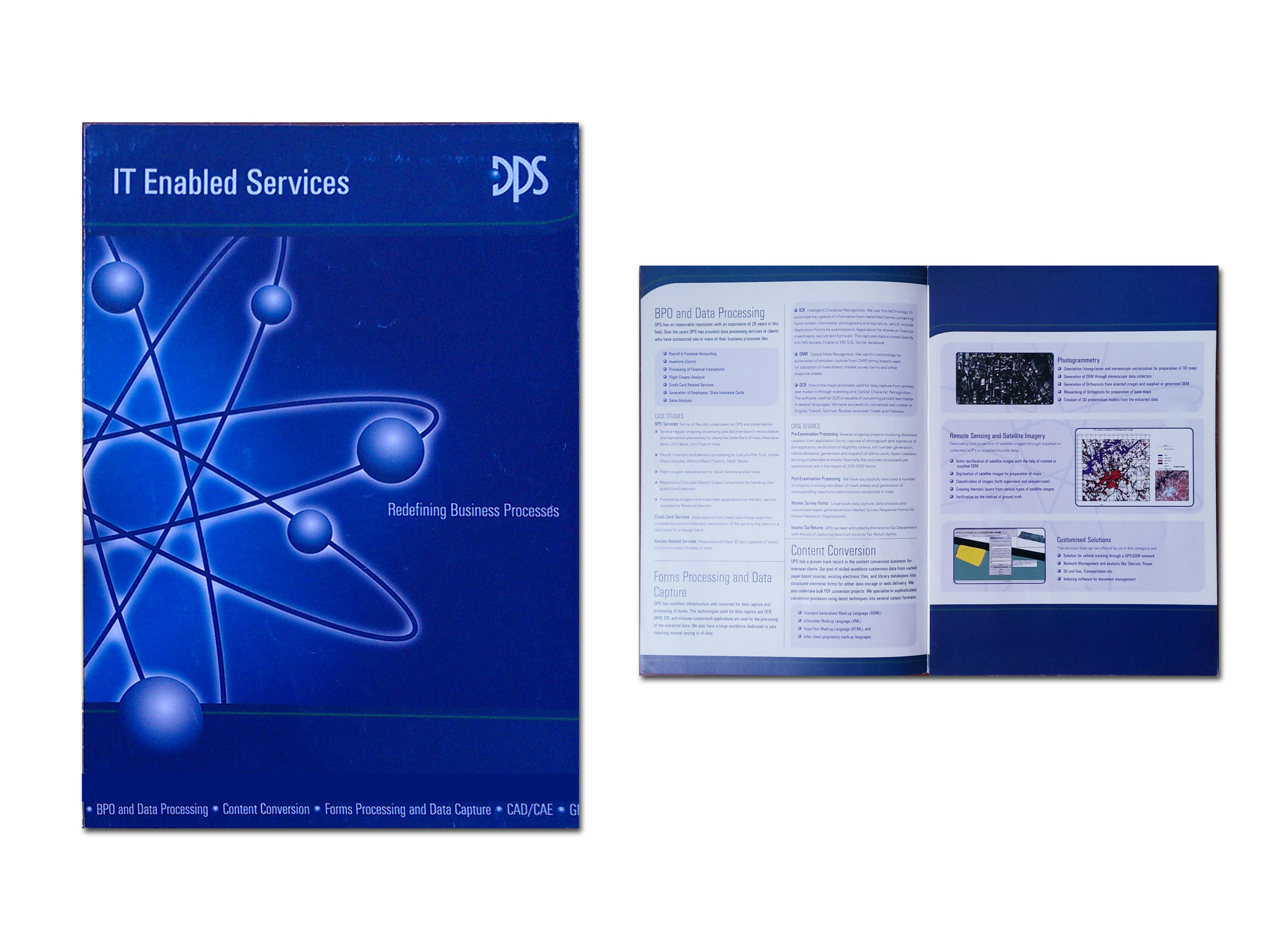A profile for an IT firm that uses an atomic molecular graphic to convey the scope of the organisation's business processes. Navy blue, the colour of science and thought has been used for the cover and the background. Seek More